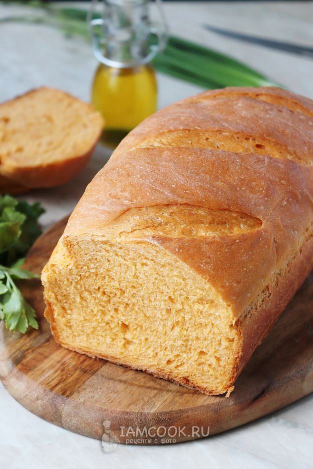 Вот и всё, очень вкусный хлеб с ярким пористым мякишем готов. Нарежьте его на порционные кусочки и подавайте на стол к первым блюдам.