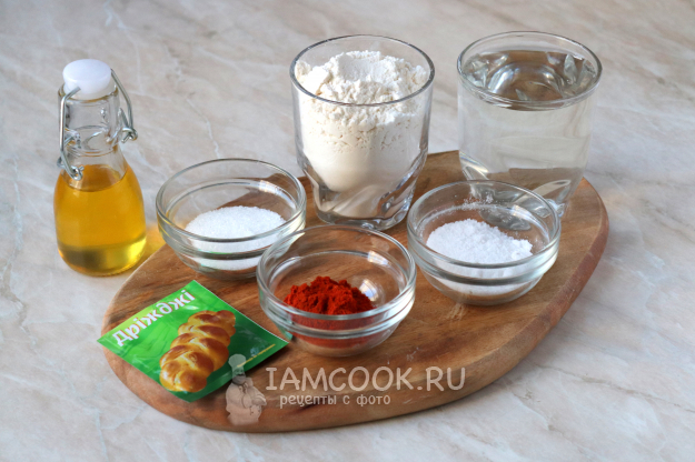 Для приготовления дрожжевого хлеба с паприкой в духовке подготовьте продукты по списку к рецепту.
