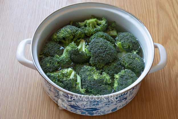 Отварите брокколи в слегка подсоленной воде до желательной степени готовности. Моя семья предпочитает мягкую брокколи, я варю 12 минут с момента закипания.