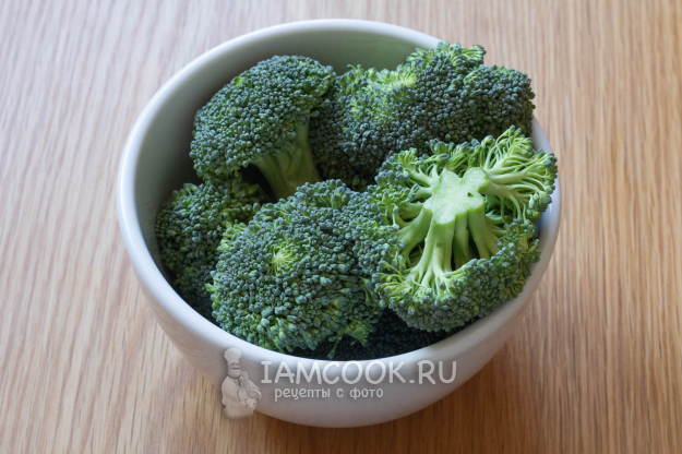 Разделите брокколи на отдельные фрагменты, которые будет удобно накалывать на вилку.