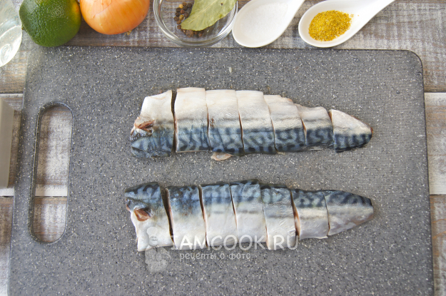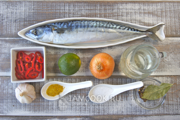 Подготовьте все необходимые продукты для приготовления эскабече из скумбрии.