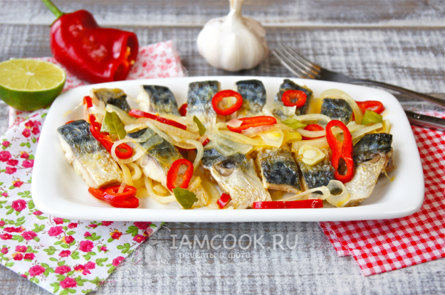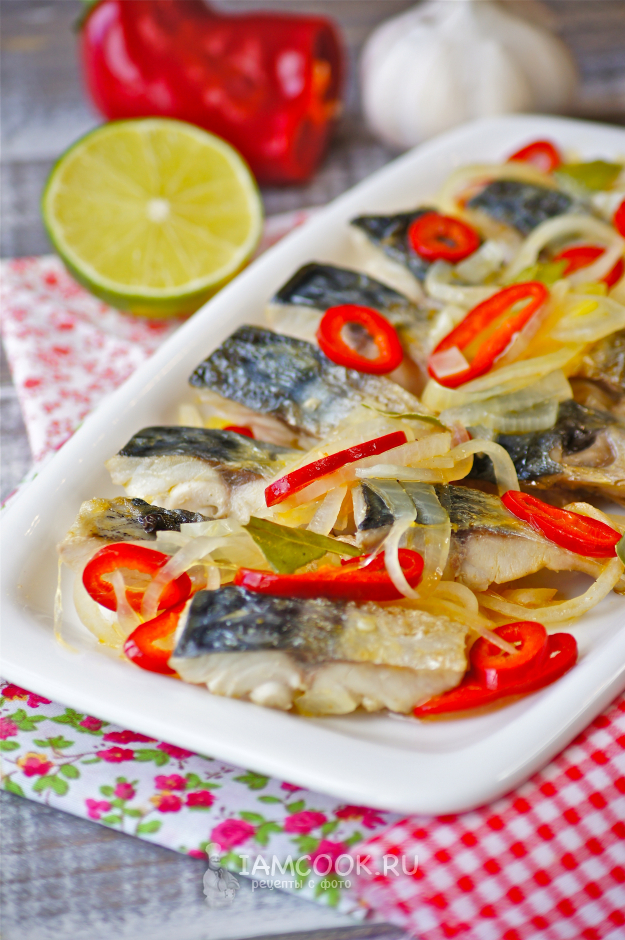Отличная закуска эскабече из рыбы (из скумбрии) готова.