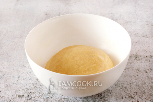 Накройте тесто пленкой и поставьте для подъема в теплое место.