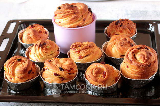 Из этого теста и с такой же начинкой вы можете приготовить большие куличи-краффины к Светлому Празднику Пасхи.