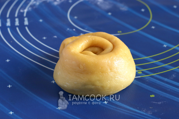 Тщательно защипнуть края теста со всех сторон и свернуть тесто улиткой. Проделать эту процедуру с остальными частями теста.