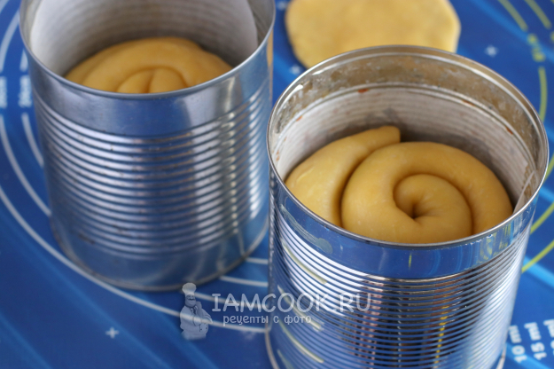 Для меня уже много лет идеальными являются банки из-под консервированных ананасов, как раз хороший и удобный размер. Дно и бока банок или форм для выпечки проложить пергаментом. Выложить в каждую банку по 2 улитки, одну поверх другой.