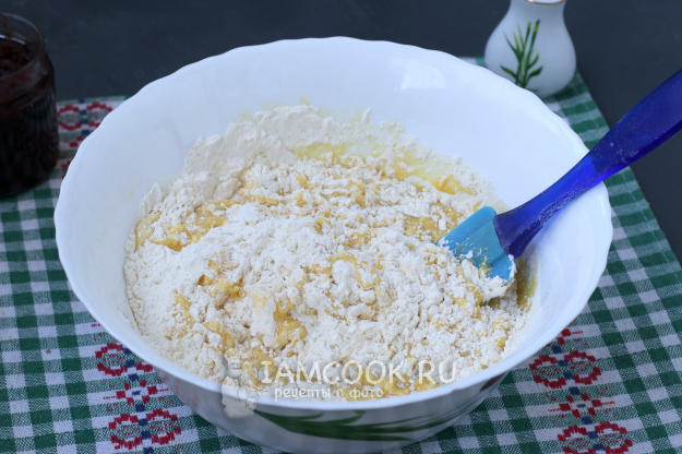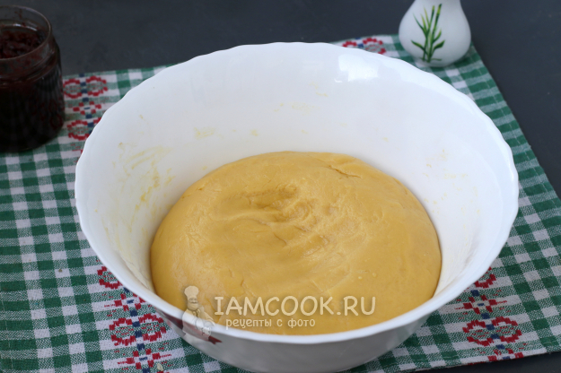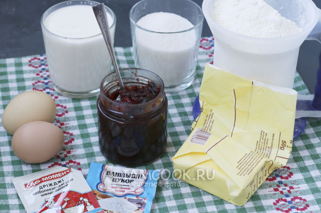 Все продукты обязательно должны быть комнатной температуры. То, что хранится в холодильнике (яйца, масло), нужно достать заранее. Джем обязательно нужен густой, чтобы можно было легко склеить тесто.
