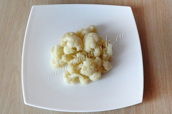 2. Капусту разобрать на соцветия, отварить в кипящей подсоленной воде 5 минут.