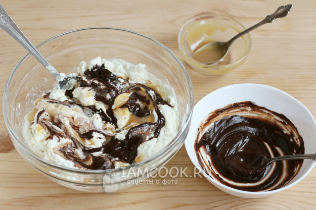 И насчет пропорции творога - в одну форму не уместится, там 550 грам творога и + карамель + шоколадная глазурь.. 2 формы нужны, или убавлять пропорции.