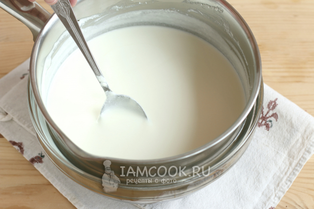 После снимем кастрюлю с плиты и поставим в широкую емкость с холодной водой, чтобы остудить творожную массу. После остывания можно поставить кастрюлю в холодильник, чтобы она остыла сильнее.