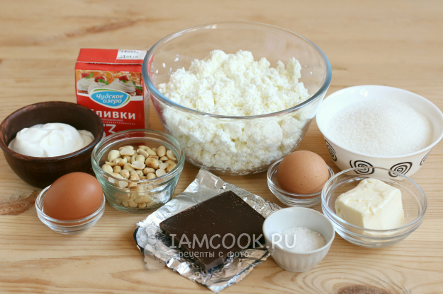 Для приготовления творожной пасхи «Сникерс» подготовим необходимые продукты по списку.
