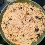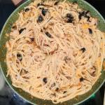 Паста с консервированным тунцом и оливками в сливочном соусе готова. Приятного аппетита!