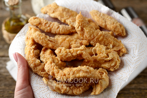 Выложите стрипсы на бумажные полотенца, чтобы убрать лишнее масло.