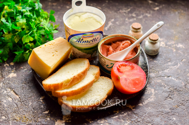 Подготовить продукты для бутербродов с икрой минтая, сыром и помидором. Батон можно заменить любимым хлебом.