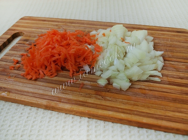 Мелко режем лук, морковь натираем на тёрке.