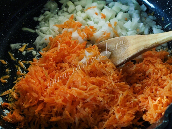 Обжариваем лук с морковью на растительном масле.
