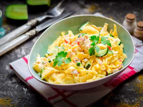 Подготовить продукты для салата с фасолью и крабовыми палочками без майонеза.