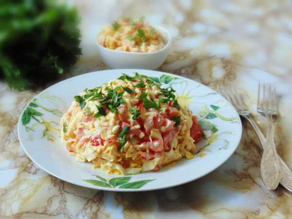Куриное яйцо отварить 10 минут, почистить и нарезать кубиками. Добавить яйцо в салат.