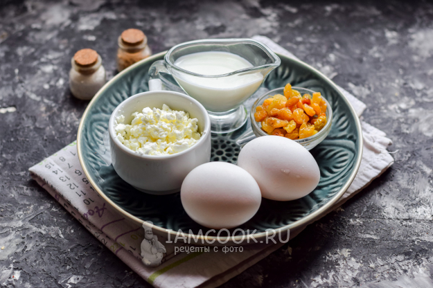 Подготовить продукты для омлета с творогом и изюмом.