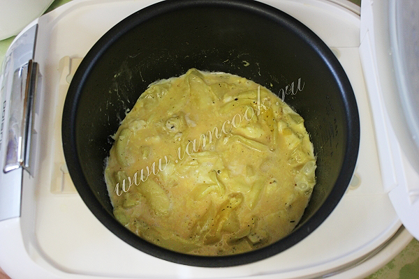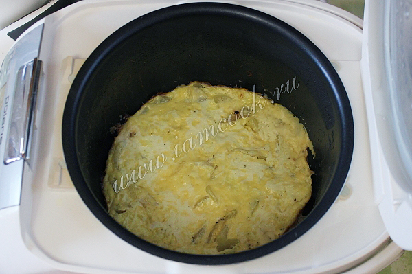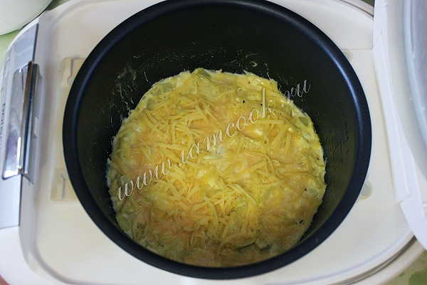 Запеканка из кабачка, приготовленная в мультиварке готова.