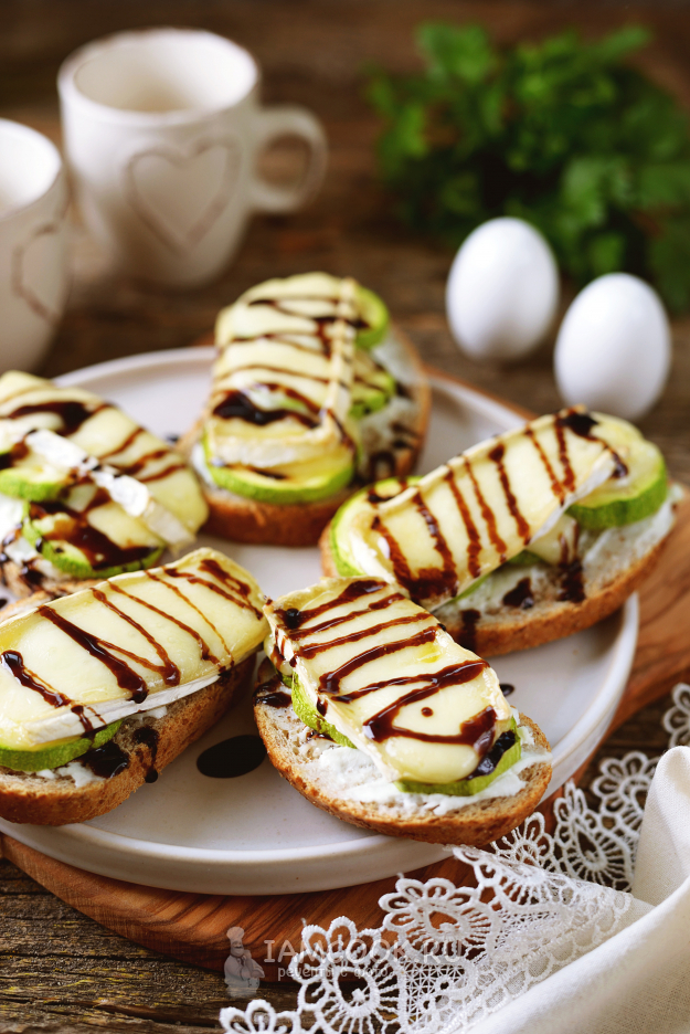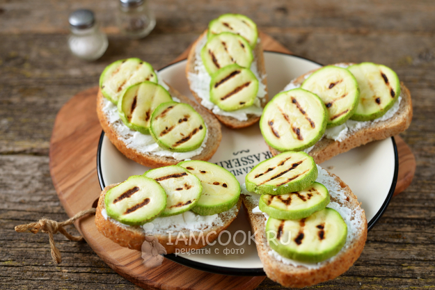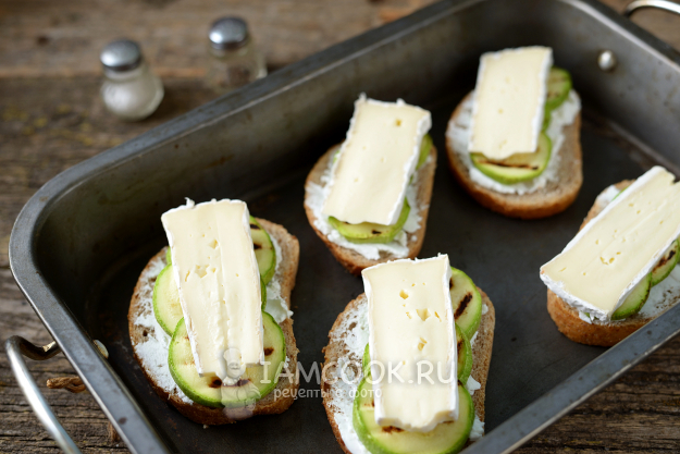 Горячие бутерброды с сыром бри и кабачками-гриль готовы. Приятного.