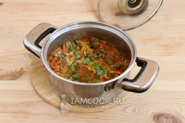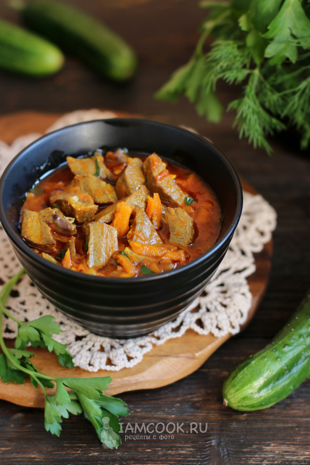 Приготовленное таким образом рагу из говяжьего сердца получается очень вкусным и полезным.