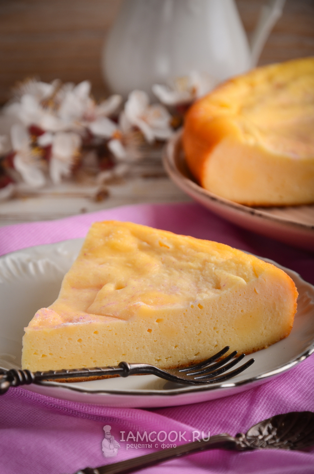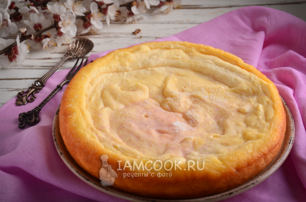 В результате получится пышная творожная масса. Ее нужно переложить в смазанную маслом чашу мультиварки и разровнять. Выпекать творожный пудинг в мультиварке в течение 40 минут на режиме Выпечка. Если чаша не имеет антипригарного покрытия, то лучше застелить изнутри фольгой или пергаментом.