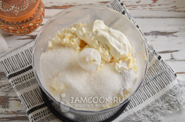 Накройте чашу крышкой и перекручивайте все ингредиенты в течение двух минут. Получится однородная творожная масса.
