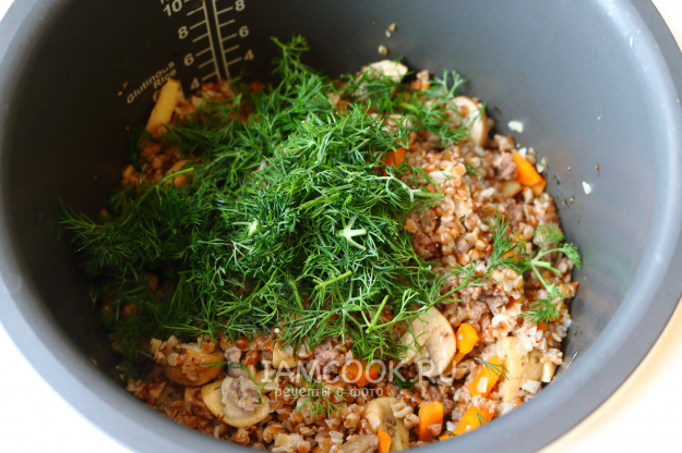 В конце приготовления обязательно добавляем в кашу свежую зелень.