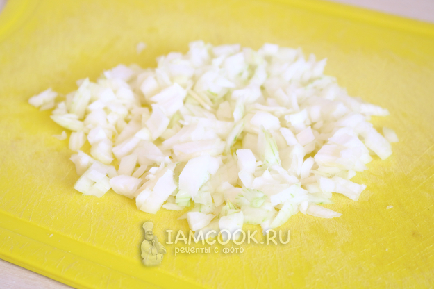 Тем временем лук нарезаем мелким кубиком.