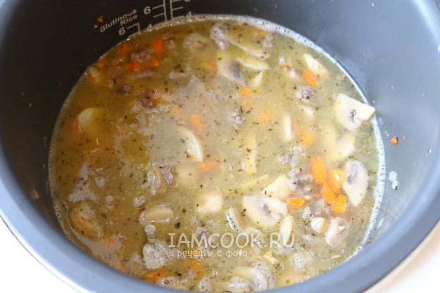 Затем вливаем горячую воду, немного мешаем, закрываем крышку и оставляем блюдо самостоятельно готовиться до отключения прибора. У меня на это ушло 25-30 минут.