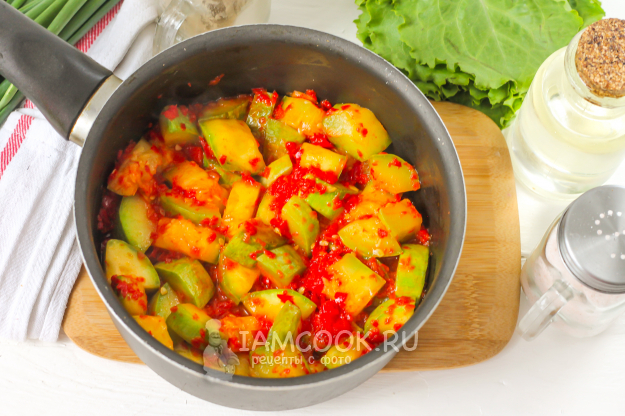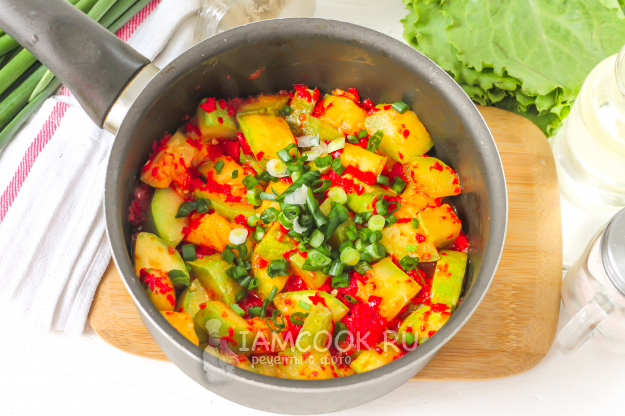 Жидкость должна немного выпариться, а кусочки кабачков - подрумяниться.