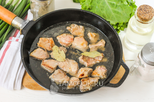Мясо не должно подгореть - оно должно выпустить жидкость и жидкость должна слегка испариться.