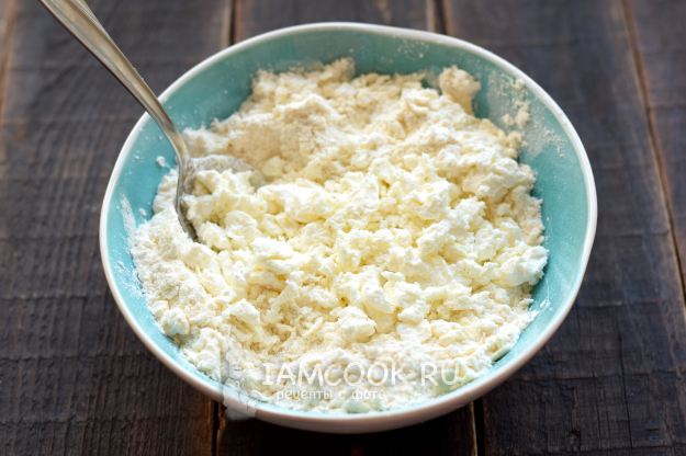 Зернистый творог немного разотрите вилкой, добавьте в основной состав.