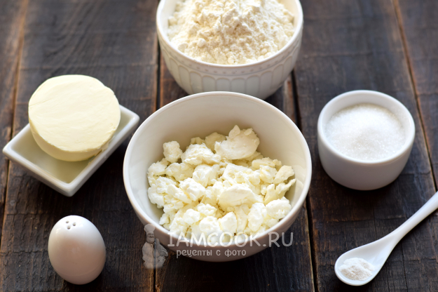 Ингредиенты для приготовления творожного печенья на сковороде - перед вами.