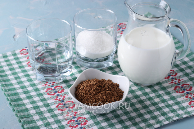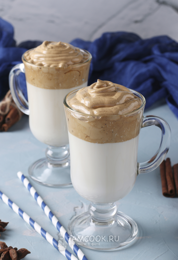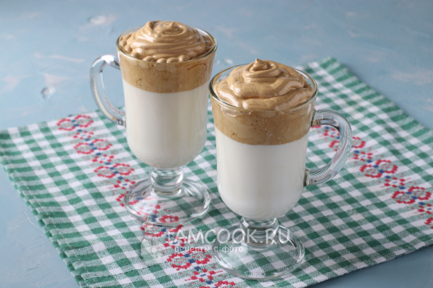 Для приготовления кофе Дальгона (Dalgona coffee) подготовить из списка необходимые ингредиенты.