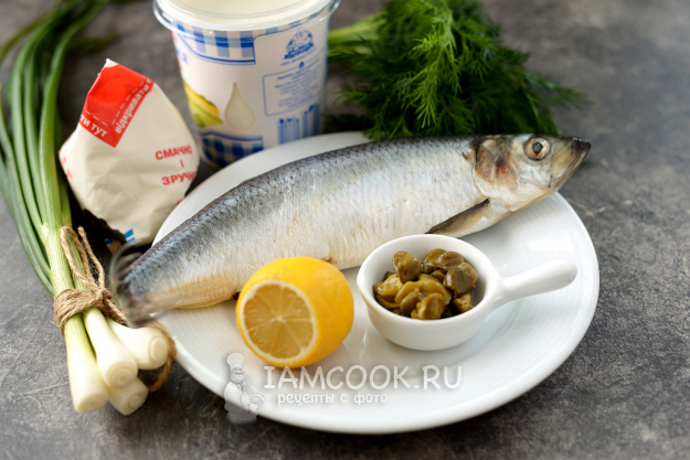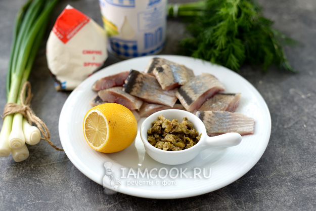 Очистите сельдь от внутренностей, отрежьте голову и хвост, удалите хребет, снимите кожу. Филе нарежьте небольшими кусочками. Измельчите каперсы. Каперсы, кстати, можно заменить на маленький маринованный огурчик.