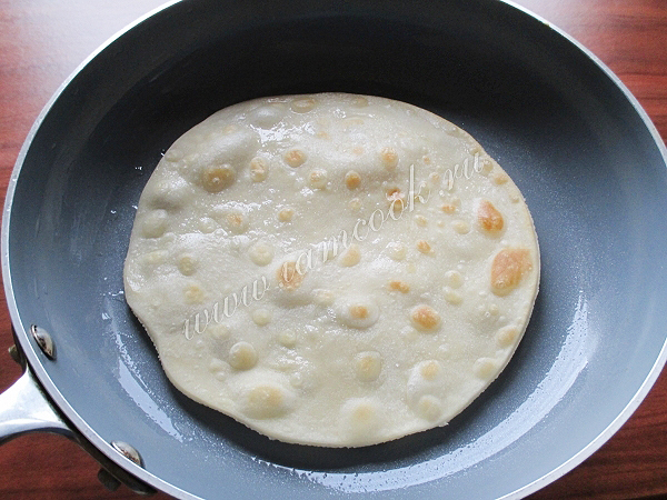 Обжарьте тонкие лепешки на сковороде на растительном масле с двух сторон.