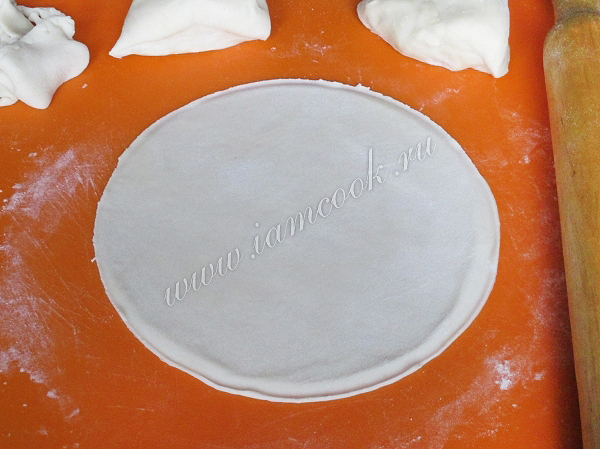 Из этого объема теста получится шесть лепешек размером около 18 см в диаметре, т.е. разделите тесто на пять частей, каждую раскатайте, подровняйте в круг и из обрезков сделайте ещё одну лепешку.