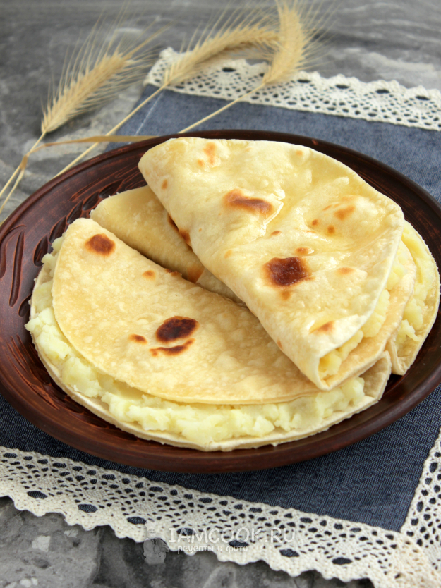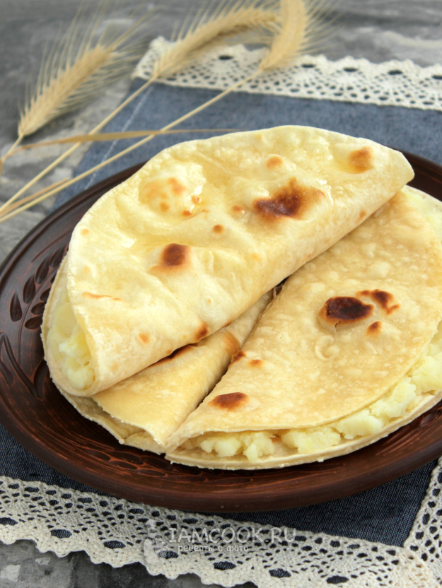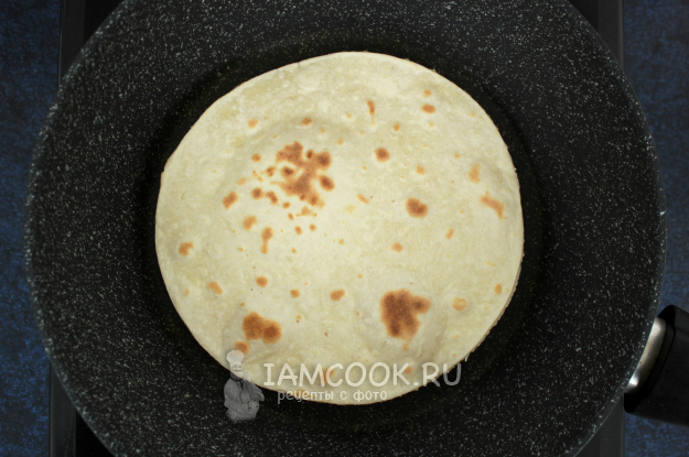 Обжарьте тонкие лепешки на сковороде без масла с двух сторон.