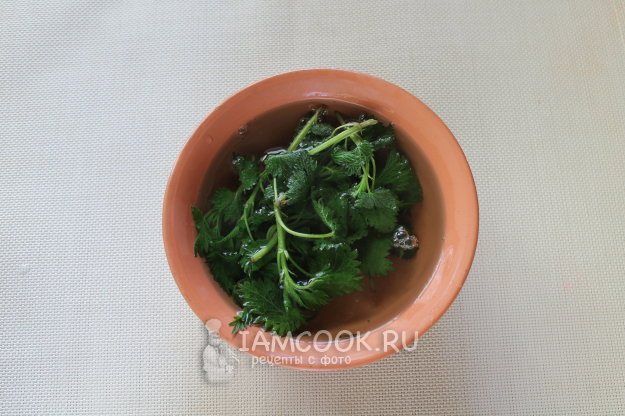 Промытую крапиву залейте кипятком на 5 минут, а затем откиньте на сито и отожмите.