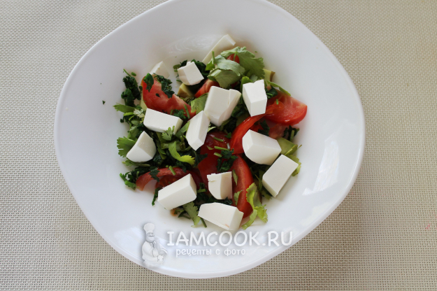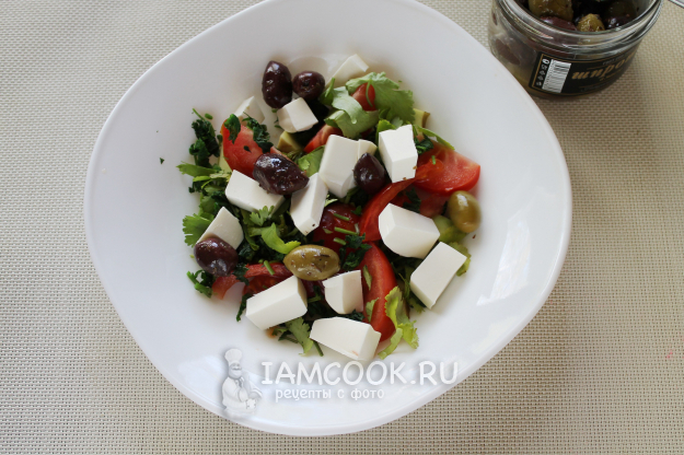 Добавьте нарезанный или раскрошенный мягкий сыр. В данном случае это фетакса, но подойдет любой мягкий сыр, в том числе рассольный.