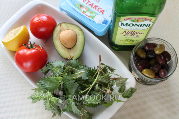 Для приготовления салата из крапивы с авокадо и помидорами понадобятся следующие продукты.