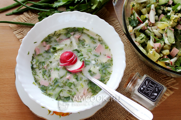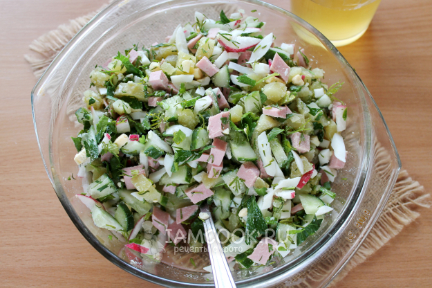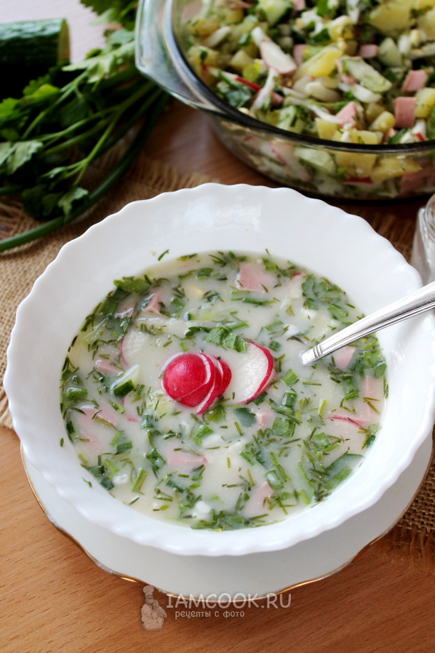 Окрошка на березовом квасе с колбасой готова!