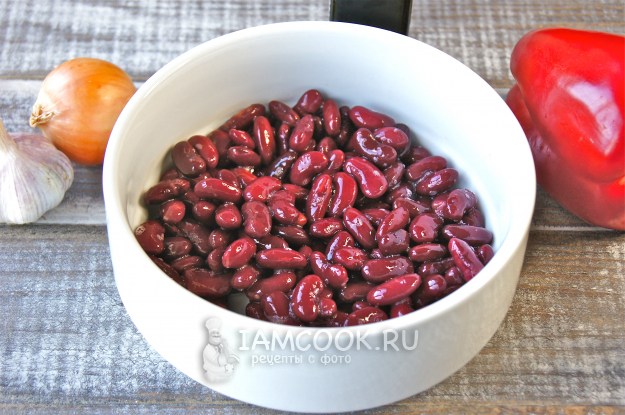 Если вы не любите консервированную фасоль, то можно предварительно отварить красную фасоль своими силами. Промойте фасоль и замочите в холодной воде на ночь, затем смените воду и варите в подсоленной воде около 1,5 часов, воды должно быть на 5 сантиметров выше фасоли, после приготовления остудите.