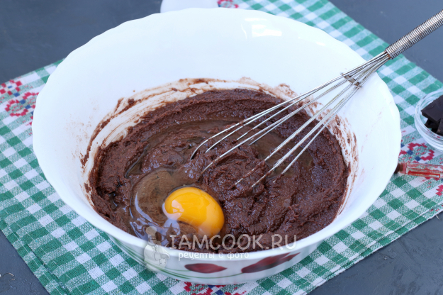 Тесто перемешать и добавить яйцо.