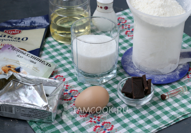 Для приготовления мокрого шоколадного печенья подготовить из списка необходимые ингредиенты.