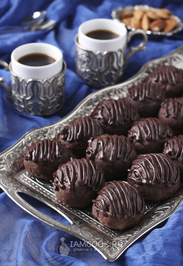 Как только печенье поставили выпекать, сразу приготовить сахарный сироп. В воду добавить сахар и поставить на огонь. С момента закипания варить сироп 2 минуты. Оставить его остывать. Готовое печенье опускать в остывший сироп на 8-10 секунд, после чего складывать на тарелку.