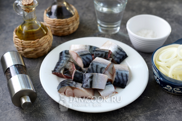 Итак. Отрежьте голову и хвост, удалите внутренности и черную пленку внутри брюшка, срежьте филе с хребта. Нарежьте филе ломтиками толщиной около 2 сантиметров. Репчатый лук нарежьте кольцами, смешайте соль с сахаром.