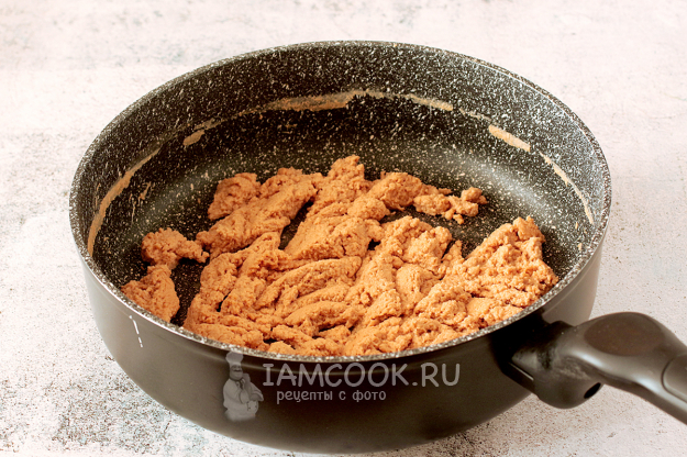 Поворачивайте, перемешивайте и растирайте полученную смесь. Огонь при этом - слабый.